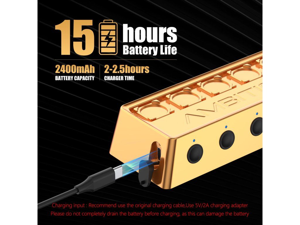 Baterie 2400 mAh zvládne až 15 až 16 hodin provozu na 1 nabití.