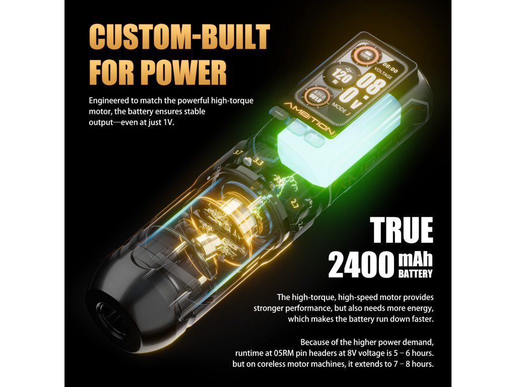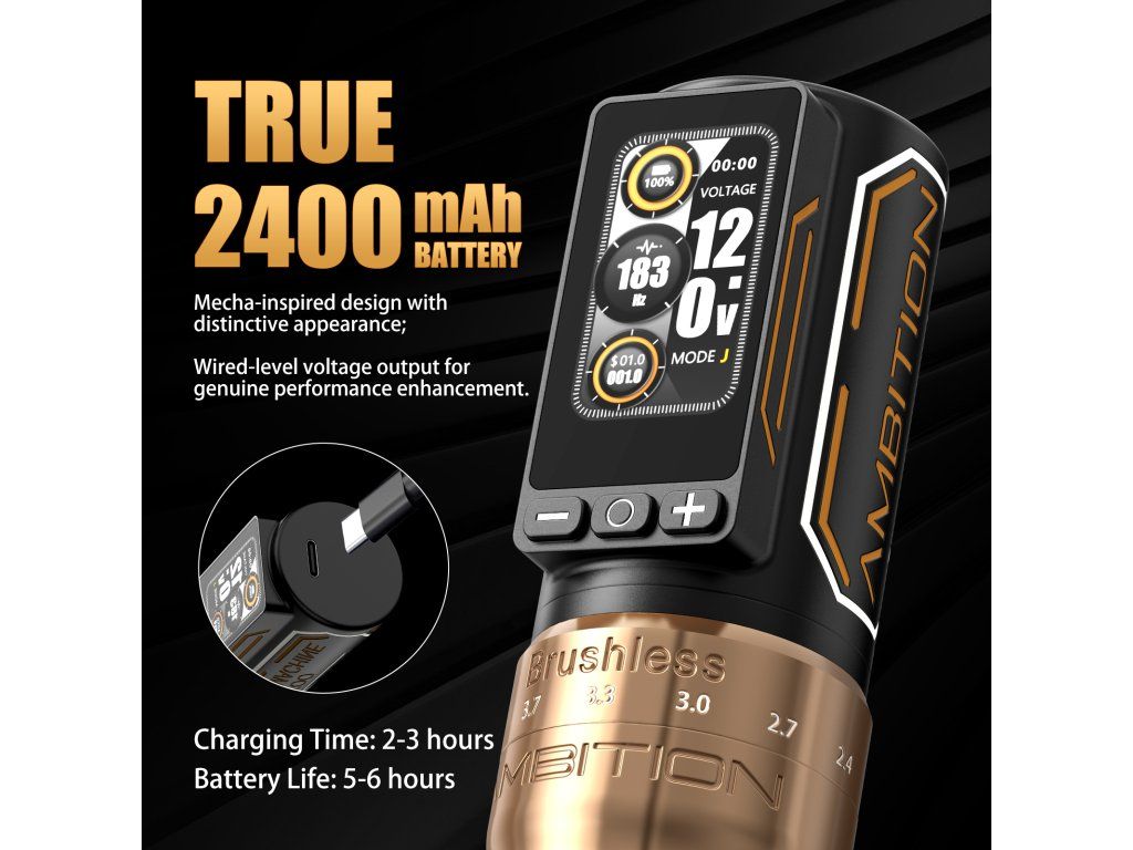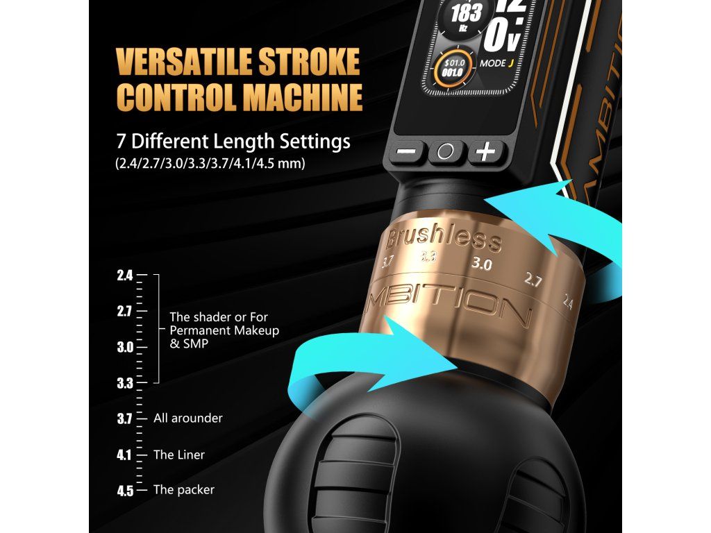 Ambition Ninja Max 280 Dual Battery je bezdrátový tetovací strojek s vysokým výkonem, nastavitelným zdvihem 2,4 až 4,5 mm a 2 bateriemi v balení. Zlatá varianta spojuje silný motor, širší rozsah nastavení a výrazné provedení pro každodenní práci ve studiu.