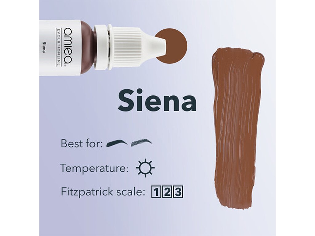 Amiea Siena vyzařuje teplý středně hnědý odstín, pečlivě vytvořený tak, aby hladce splynul s kaštanovými vlasy a zvýrazňoval jejich přirozenou krásu. Jeho všestrannost v aplikacích tahu a stínování z něj činí základní volbu pro zvýraznění obočí a poskytuje přirozený a dobře definovaný vzhled.