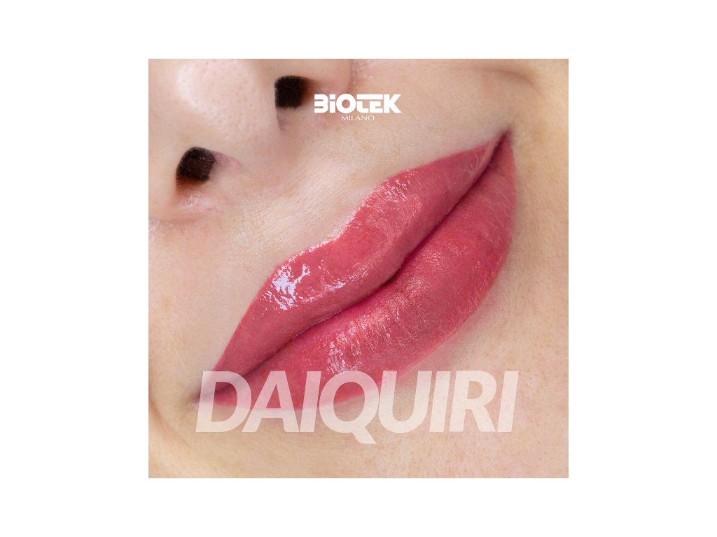 Pigment Biotek Daiquiri je navržen pro techniky permanentního make-upu a microblading rtů a nabízí zářivý korálově broskvový odstín, který dodává rtům svěží, moderní vzhled. Barva je efektivně krycí, po zahojení zachovává plnou intenzitu a minimalizuje nežádoucí posuny tónu. Vyrábí se v Itálii z vysoce kvalitních surovin, má veganské složení a nebyl testován na zvířatech. Pigment je připraven k okamžitému použití, bez nutnosti ředění nebo přidávání modifikátorů.