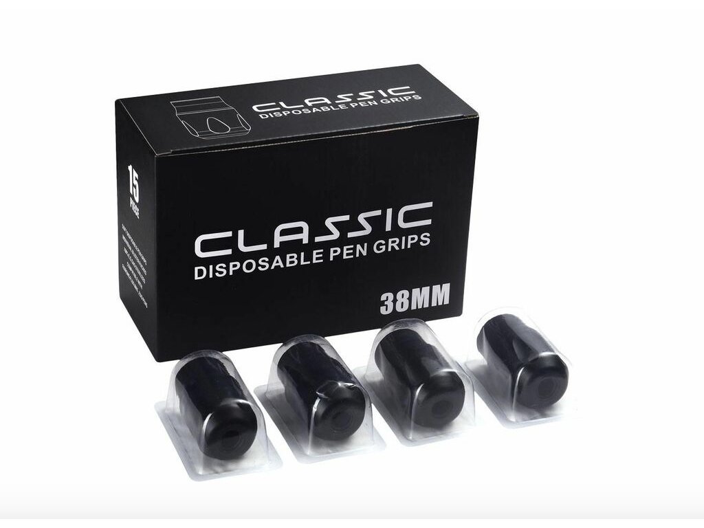 WAND jednorázový grip 38 mm je navržen pro profesionální použití v tetovacích studiích, kde je kladen důraz na hygienu, ergonomii a kontrolu při delších sezeních. Zvýšený průměr úchopu 38 mm poskytuje stabilnější držení strojku a může přispět ke snížení únavy ruky zejména při delší práci nebo u technik vyžadujících pevnější vedení.