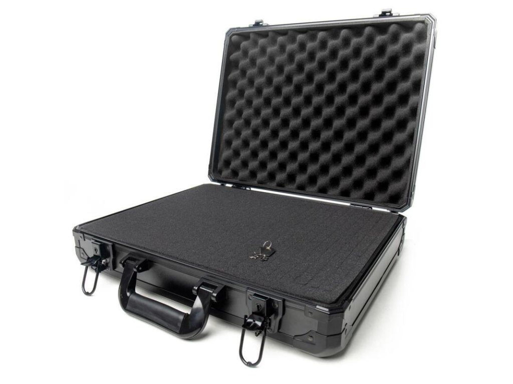 Kvalitní uzamykatelný přepravní kufřík od Criticalu na přenos strojků na konvence se zpevněnými rohy a pevnými stěnami. Rozměry: šířka: ca. 420mm výška: ca. 340mm hloubka: ca. 101,6mm vnitřní pěnová výplň zpevněné rohy a stěny gumové nožky 2x zámek a klíče