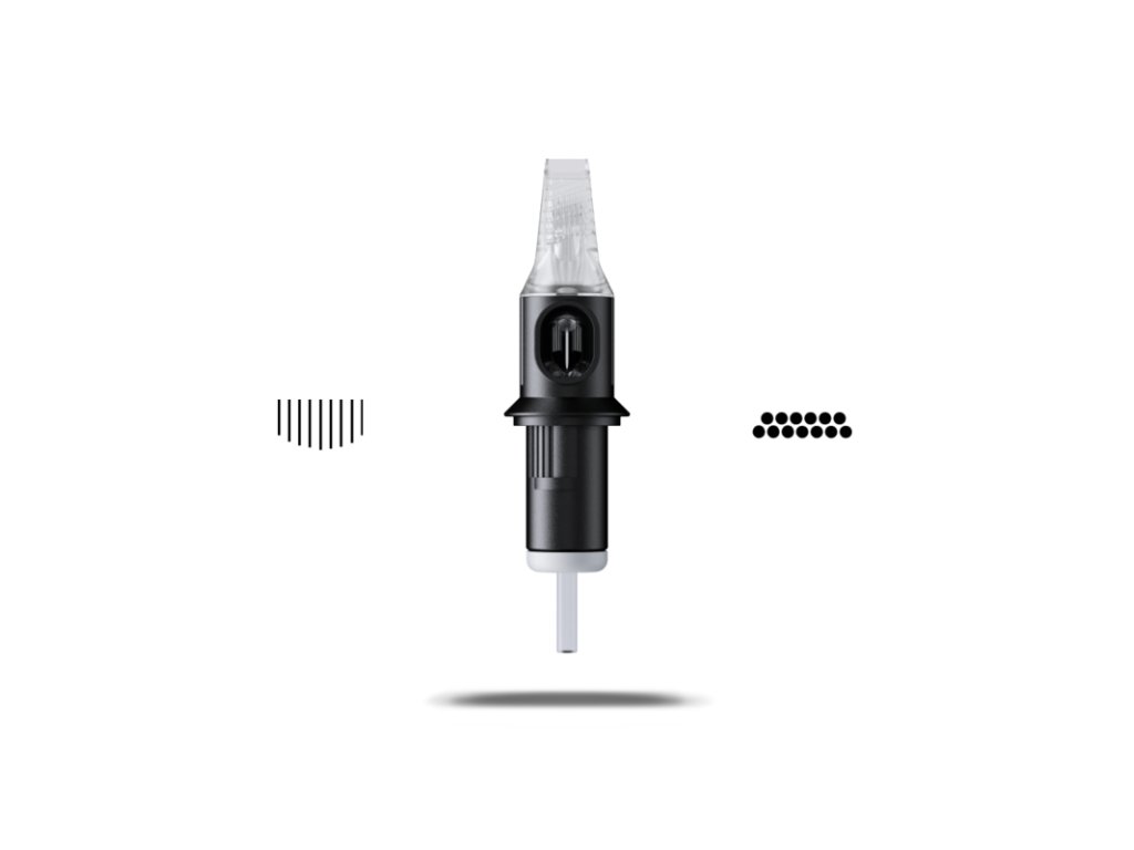 Nejnovější cartridge od vynálezce cartridgí, německého Cheyenne Uvnitř hrotu kartuše je kapilára s rezervoárem. Během plnění naše kapilární cartridge absorbují více inkoustu než běžné cartridge. Výsledkem je až 10krát delší tok inkoustu, než znovu namočíte špičku do barvy. Míchání barev v cartridgi a úplné čištění pomocí vody je stále zaručeno. Vylepšené vedení jehly umožňuje ultraprecizní práci v jakémkoli směru. Kapilární cartridge zajišťují, že inkoust je rovnoměrně rozložen na všechny jednotlivé jehly, dokonce i ve velkých velikostech jako 15 magnum. Výsledkem je, že tetovaná plocha je vyplňována důsledně, spolehlivě a především rychleji, což pro zákazníka znamená menší poškození kůže. Kapilární zásobník na barvu pro až 10krát delší tok inkoustu Vylepšené vedení jehly pro ultra přesnou a všesměrovou práci Rovnoměrné rozložení inkoustu u všech jednotlivých jehel pro lepší výsledky tetování a menší poškození kůže 100% kontrola kvality Barevné čepičky pro snadnou identifikaci konfigurace cartridgevideo