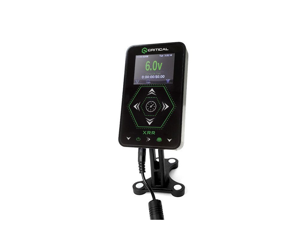 Vlastnosti: • Plně barevný TFT display s uživatelsky volitelnými barevnými schématy a velkým písmem pro snadnou čitelnost. • volitelně bezdrátový pedál (prodáván samostatně) • Vyladěné dotykové ovládání • Snadné uchycení ke stolu (magnetický držák v balení) • Jump start a režim stálého pedálu • Čítač délky tetování, délky práce, a další • Tlačítko Pedal override - není nutný pedál (ovládání tlačítkem) • hodiny • Dva nezávislé výstupy • Optimální velikost pro snadnou ochranu před znečištěním standardními sáčky • Více možností uchycení přes stativový závit Technické specifikace • Tělo z anodizovaného hliníku • Originální vysoce kvalitní konektory Amphenol 1/4" jacks pro ideální přenos proudu • 4 amp maximum, 2 amp kontinuální napětí • Citlivě nastavitelná voltáž po 0,1V • Vestavěný ochranný okruh proti přepětí • Možnost uložit do paměti nastavení až pro 6 strojků • Paměť se nesmaže po odpojení od proudu • Univerzální vstup 90-240vac 50/60hz • Kompatibilní se standardními clipcordy a pedály s konektorem 1/4" (6,3mm) • Volts, Amps, Speed (hz), Duty Cycle(%), a STL • 2 roky záruka • Sioučást balení: XRR power supply, Magnet mount, EUR power cord a napájecí zdroj • Made in the USA