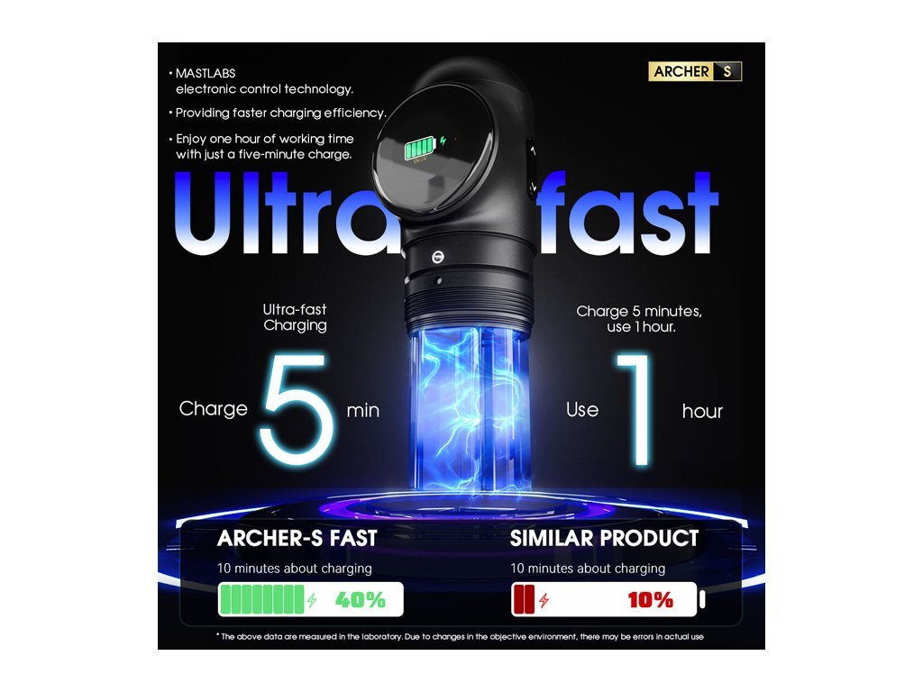 Ultra Fast Charging: Technologie elektronického ovládání MASTLABS umožňuje rychlejší nabíjení a umožňuje uživatelům užít si jednu hodinu pracovní doby s pouhým pětiminutovým nabíjením.
