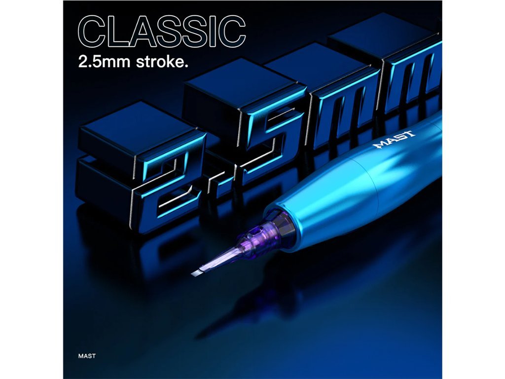- Klasický zdvih: 2,5 mm. Speciálně vyladěný tah a rychlost pro umělce permanentního make-upu.