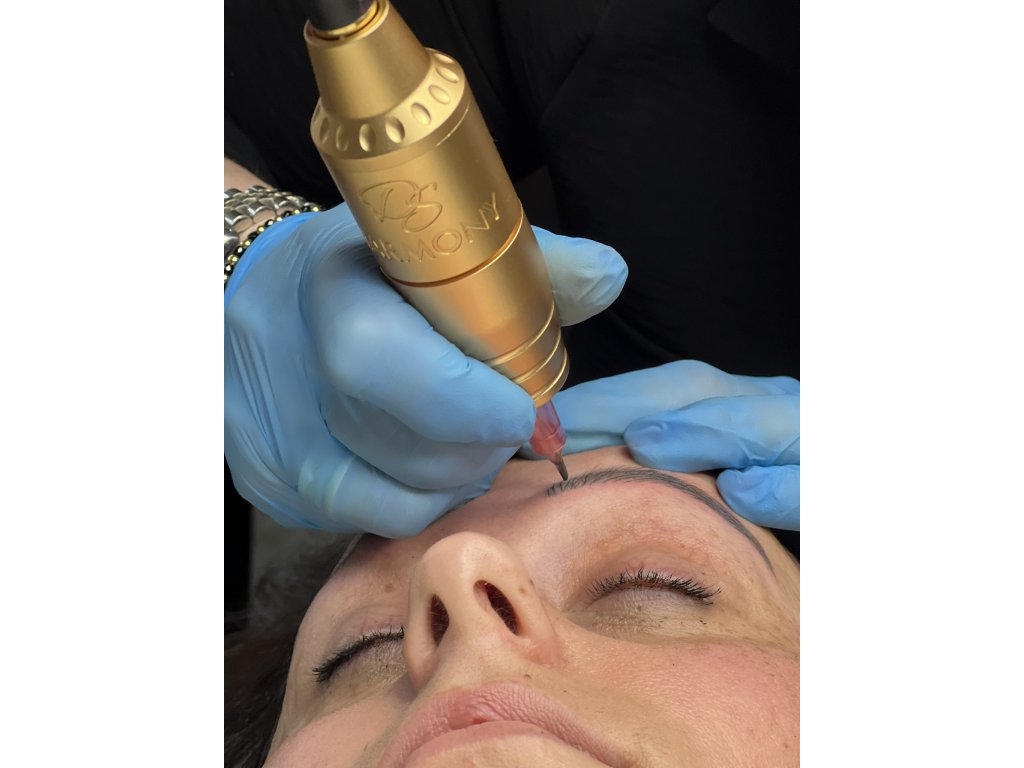 Jednoduché ovládání, designový strojek pro PMU artisty. Strojek je určen pro pohodlnou práci během celodenního použití, pero je anatomicky tvarováno pro velmi komfortní úchop, matná protiskluzová úprava povrchu, ideální váha. Pero je kompatibilní s většinou zdrojů na trhu. Easy click systém - snadné zasunutí cartridge pootočením je nejvíce osvědčený systém, možné použití s běžnými cartridge v dostupných cenách. Pero má tichý chod, velmi jemné vibrace, nastavitelná síla pro jemnou pokožku i na tvrdší partie. Obzvláště vhodné pro PMU očních linek, stínované oční linky a rtů. U obočí mimořádně čistě vykresluje chloupky při hairstrokes metodě, lehoučký pudrový efekt při powder brows metodě a ideální síla při překrytí starších PMU, při odstranění PMU vhodnými tekutinami určenými k odstranění.