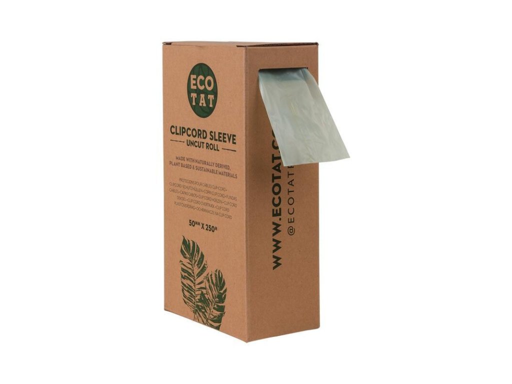 ECOTAT sáčky na clipcord jsou vyrobeny z materiálu na rostlinné bázi a jsou ekologicky odbouratelné. Jsou alternativou pro jednorázové výrobky z plastů vyrobených z fosilních paliv. Jsou tenčí a lehčí než plasty, ale stejně odolné. Používáním výrobků ECOTAT snižujete dopad své práce na životní prostředí. ECOTAT sáčky na clipcord jsou v roli nenastříhané, délka 250m, šířka 50mm. Vhodnou délku si tak můžete ustřihnout dle své potřeby.