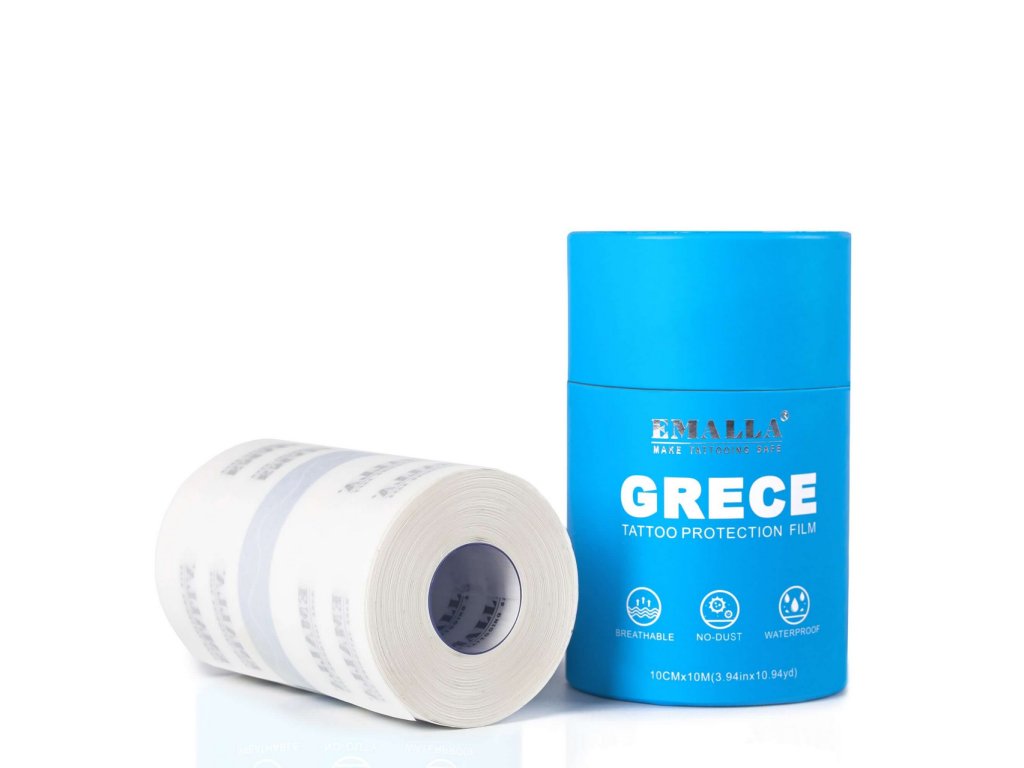 EMALLA Grece ochranná fólie chrání nové tetování a pokožku před nečistotami, vlhkostí a mechanickým podrážděním. Díky ultra tenkému, průhlednému provedení s matným povrchem je na kůži téměř neviditelná a zároveň poskytuje spolehlivou bariéru proti bakteriím a oděru.