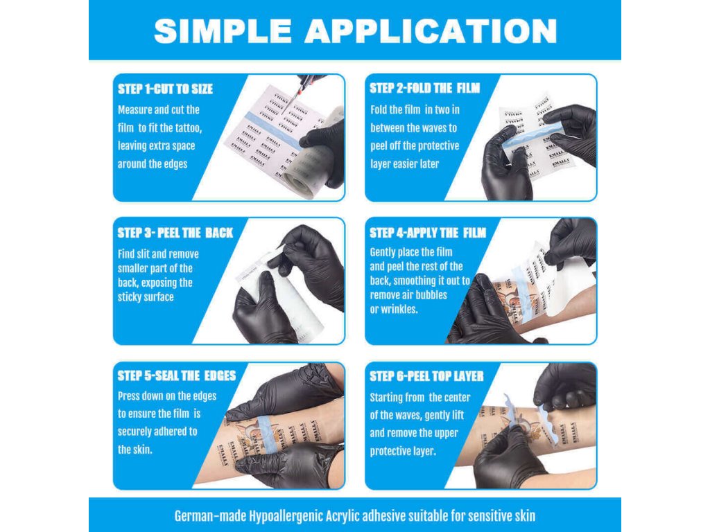 Fólie je flexibilní, voděodolná a prodyšná, takže pokožka může dýchat a zároveň je možné vykonávat běžné každodenní aktivity bez omezení. Snadno se aplikuje i odstraňuje a je vhodná pro menší tetování i pro zakrytí konkrétních oblastí, například paží nebo nohou.