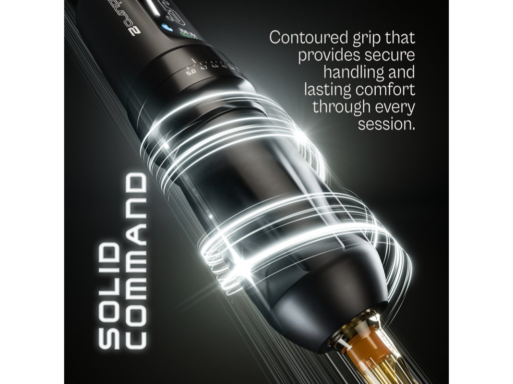 Equaliser Enduro2 je všestranný bezdrátový tetovací strojek navržený pro profesionální použití. Spojuje silný a plynulý chod, přesné ovládání a možnost rychle přizpůsobit zdvih jehly aktuálnímu stylu práce. Díky hladkému chodu, stabilnímu výkonu a minimálním vibracím je vhodný pro jemné linky, stínování i výrazné výplně.