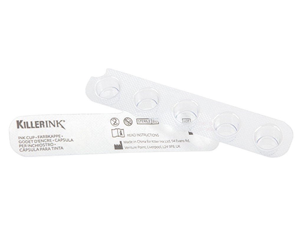 Jednorázová řada kalíšků Killer Ink pro čisté dávkování barvy.