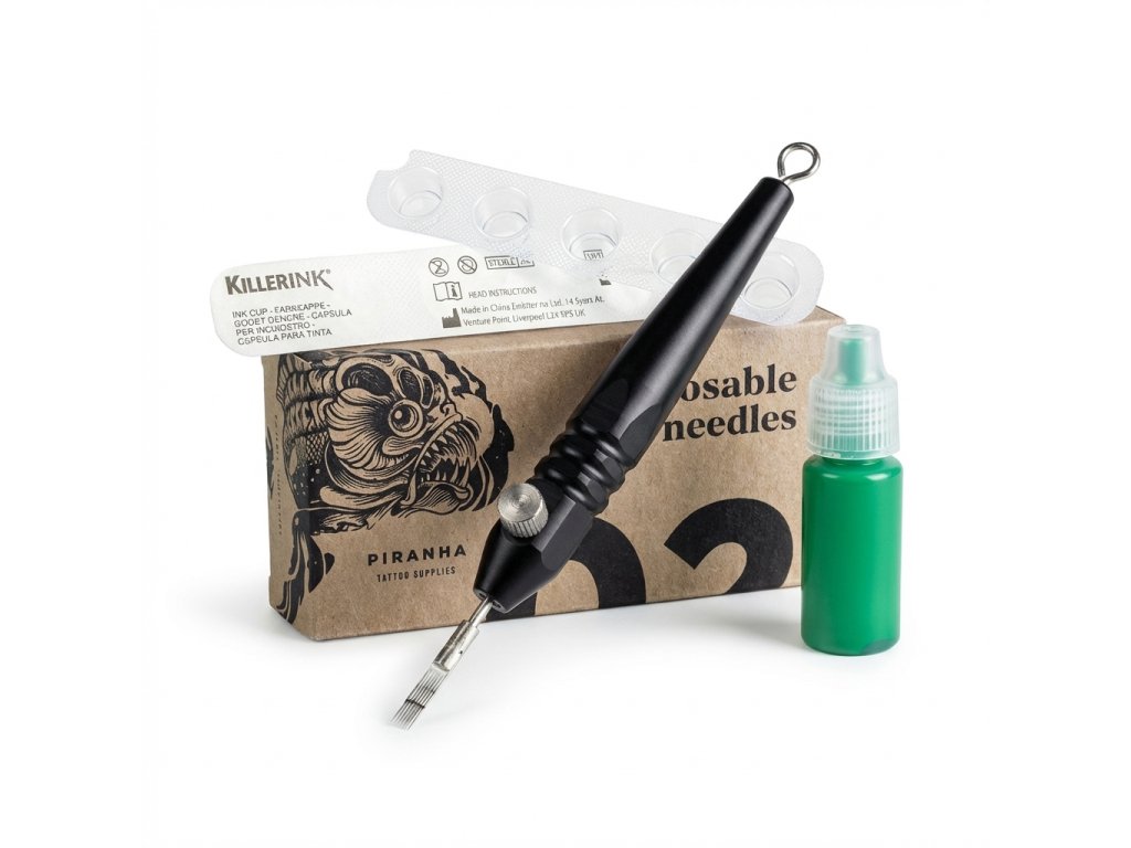 Tato kompaktní sada spojuje základní výbavu pro handpoke techniku do jednoho přehledného balení. Hodí se pro menší motivy, testování konkrétního odstínu i přesnou ruční práci s důrazem na jednoduchou přípravu.