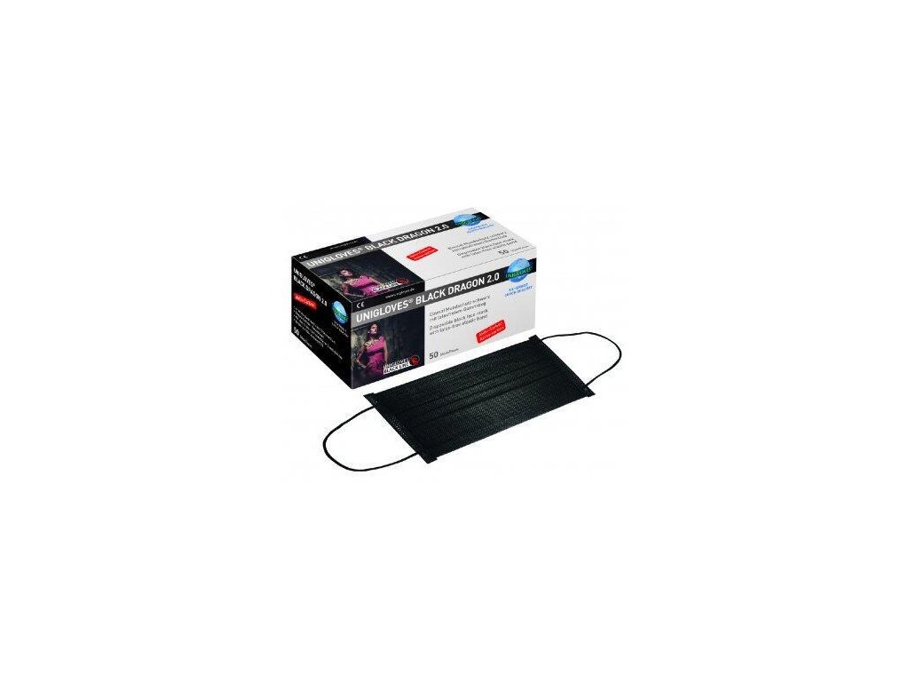 Jednorázové roušky - ústenka černá UNIGLOVES Black Dragon, 50ks v balení