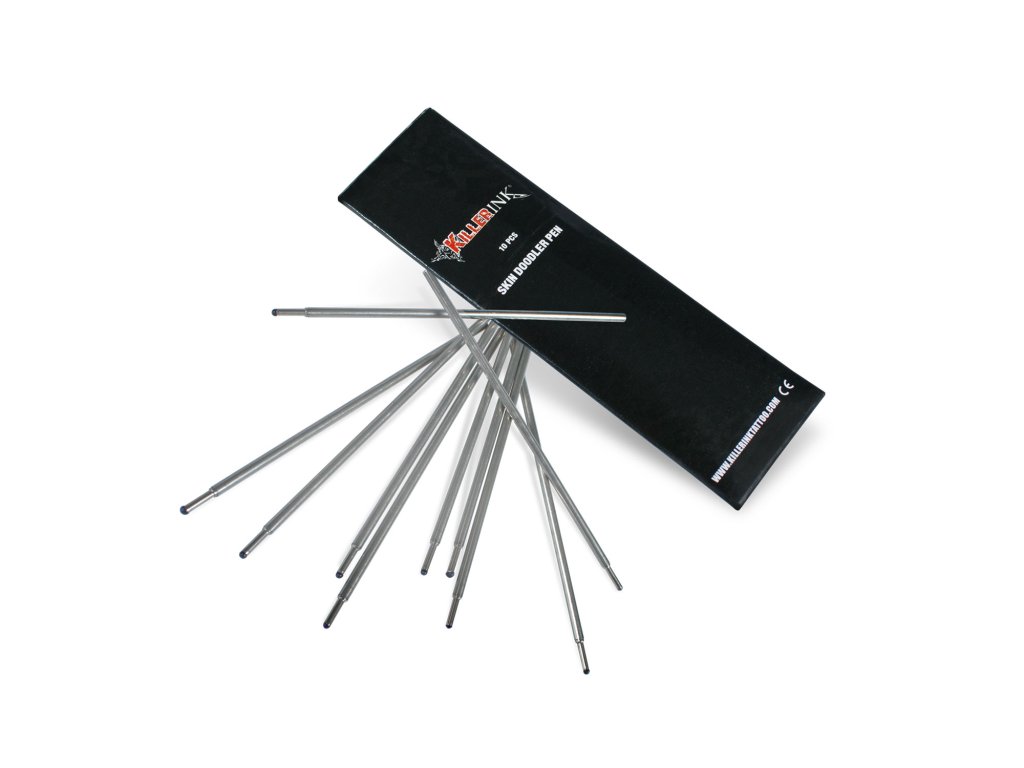 KILLER INK Skin Doodler Skin Surfer jsou jednorázové fixy určené pro přímé kreslení návrhu na pokožku. Umožňují tatérovi rychlou vizualizaci motivu, úpravy kompozice i detailní freehand kresbu bez nutnosti použití přenosového papíru.