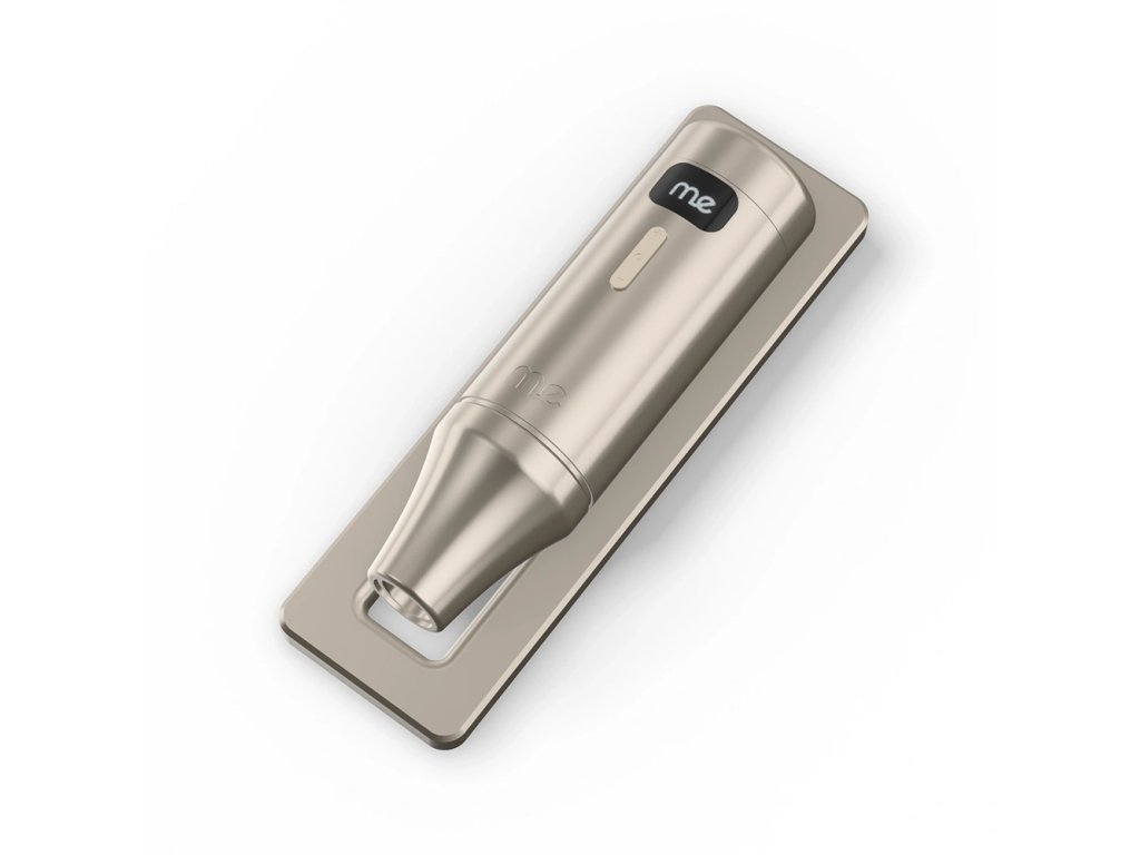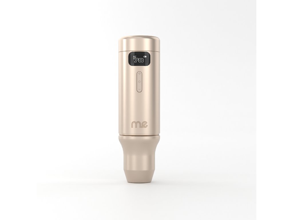 ME je bezdrátový strojek vyvinutý na základě analýzy mechaniky pohybu jehly v kůži a vztahů mezi točivým momentem, impulzní charakteristikou a stabilitou chodu. Výsledkem spolupráce PMU specialistů a inženýrů je systém řízení pohybu, který stabilizuje klíčové pracovní parametry a zajišťuje jejich opakovatelnost během každého zákroku. Strojek je osazen bezuhlíkovým motorem Faulhaber o výkonu 10 W a je vybaven 3 Hall senzory pro stabilní a opakovatelný výkon. Motor udržuje konstantní točivý moment i při nízkých frekvencích, což podporuje rovnoměrnou a kontrolovanou implantaci pigmentu bez výkyvů energie.
