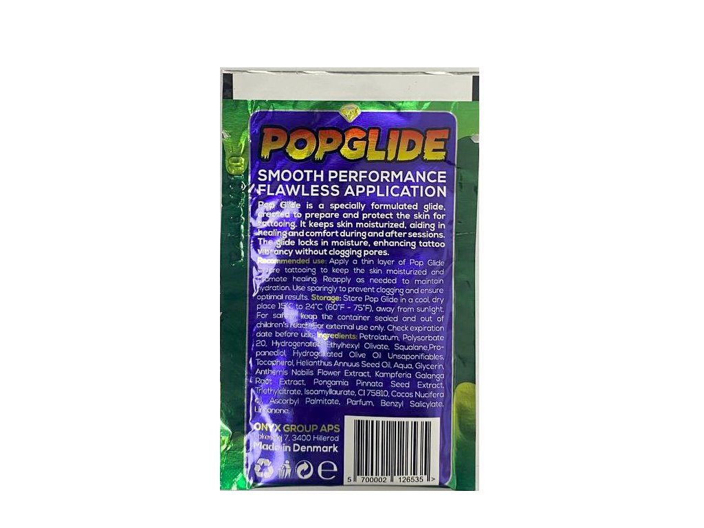 Onyx Pop Glide je pracovní máslo vyvinuté pro použití před tetováním i během samotného procesu. Konzistence produktu umožňuje rovnoměrné roztírání po pokožce a stabilní kluz při práci se strojkem. Pomáhá udržovat pokožku hydratovanou a chráněnou před nadměrným vysušováním během tetování.