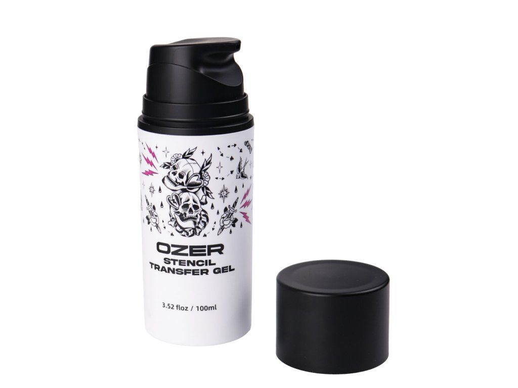 Ozer Stencil Transfer Gel je gel pro přenos tetovacích šablon na připravenou pokožku. Pomáhá udržet přenesený motiv ostrý, čitelný a stabilní během tetování.