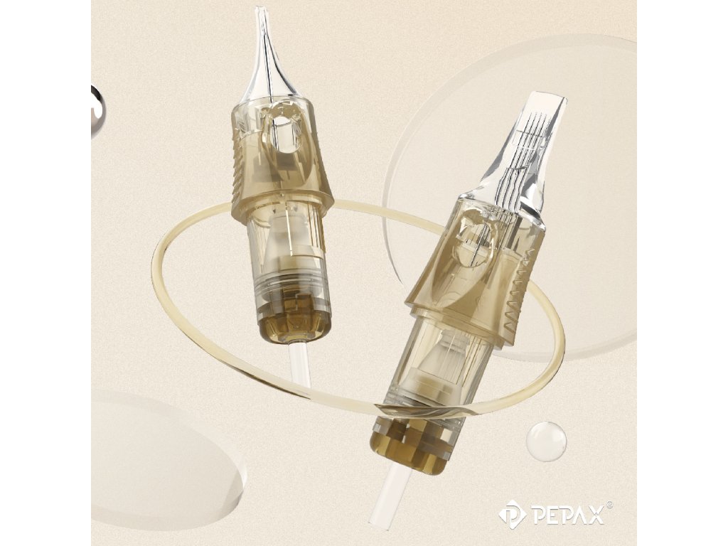 Nové cartridge jehly s bezpečnostní membránou od PEPAX přinášejí vyšší úroveň bezpečnosti a výkonu. Plastový obal je vyroben z lékařského PC materiálu, který nabízí větší bezpečnost než běžně používaný PVC. Jehly jsou vyrobeny z japonské nerezavějící oceli, s ručním ostřením a precizním uložením pro optimální kvalitu a výkon.