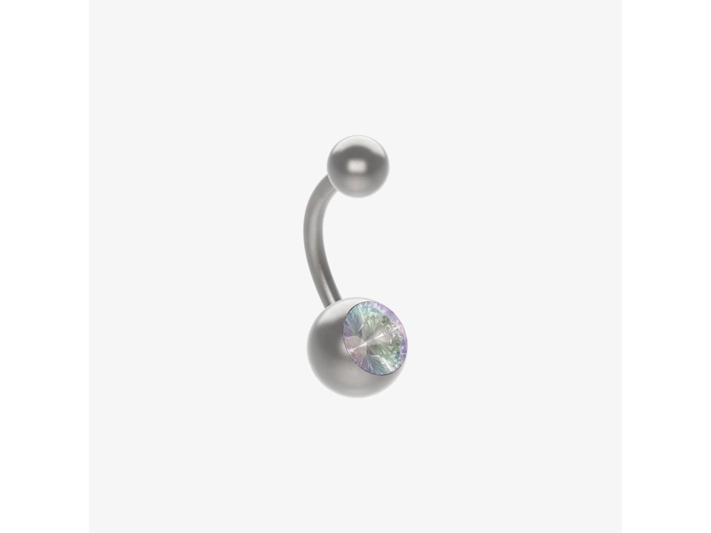 Leštěný titanový banánek s kamínkem pro čistě působící a dekorativní piercingovou nabídku.