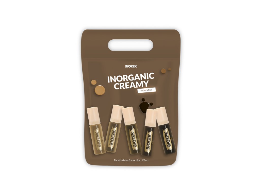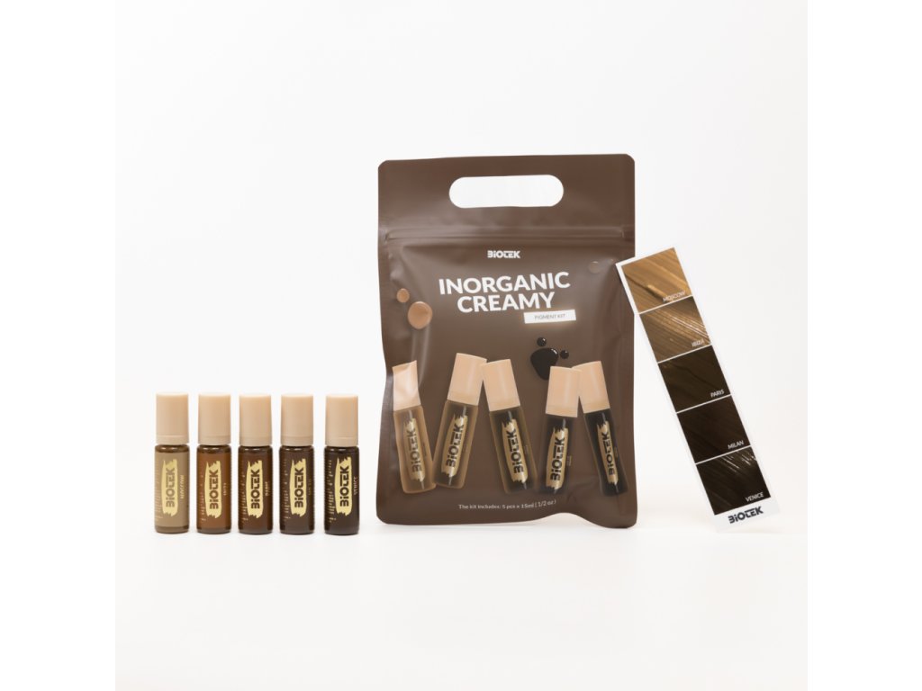 Sada Inorganic Creamy Brow Kit je určena pro profesionální použití při microbladingu i permanentním make-upu. Díky své husté a krémové textuře umožňuje přesnou aplikaci a rovnoměrné vstřebávání pigmentu do pokožky. Pigmenty mají neutrální odstíny, které jsou pečlivě vyvážené pro dosažení přirozeného výsledku u všech typů pleti.