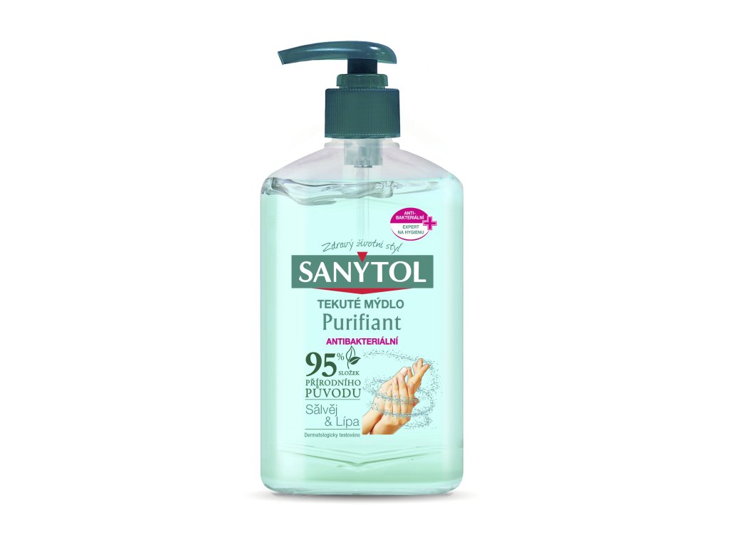 Tekuté mýdlo SANYTOL Purifiant je určeno pro každodenní hygienu rukou. Podle údajů výrobce obsahuje 95 % složek přírodního původu a je obohaceno o extrakt ze šalvěje lékařské a lípy. Produkt je dermatologicky testován a určen k běžnému použití v domácnosti i provozech s vyššími nároky na hygienu.