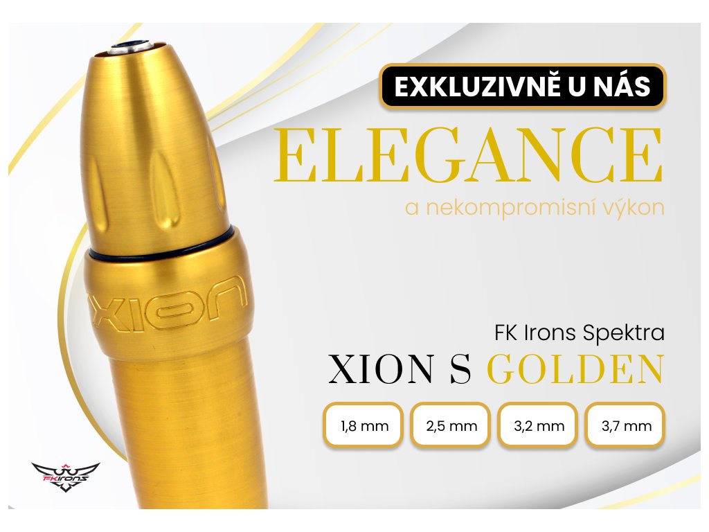 V základu je strojek FK Irons Spektra Xion S Golden osazen excentrem 2,5 mm, který je univerzálním nastavením pro většinu prací. V balení je také 1,8 mm excentr pro jemné detaily a linky, dále 3,2 mm pro precizní shading a navíc excentr 3,7 mm pro intenzivní výplně a robustní práci.