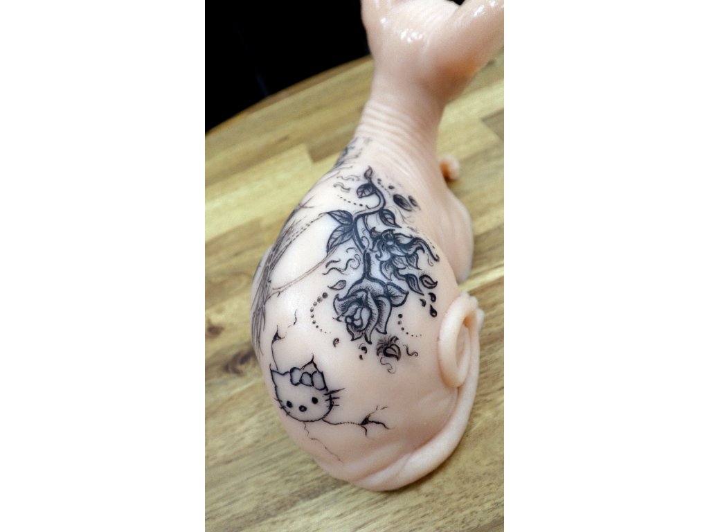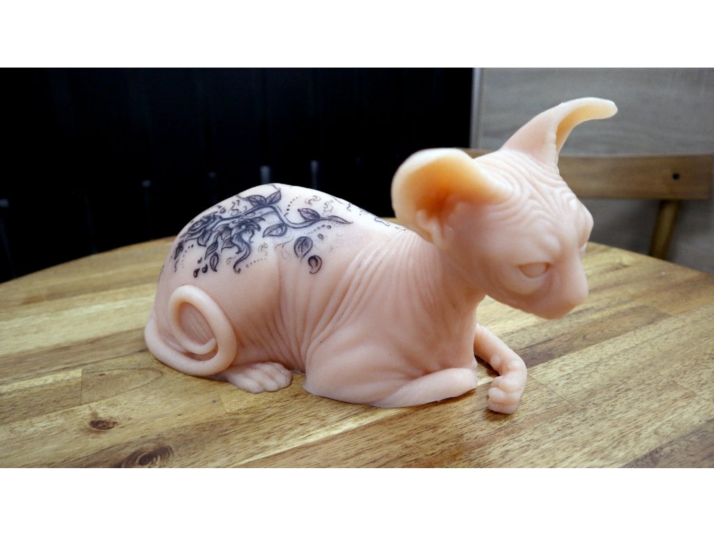 Silikonová kočka v reálné velikosti pro trénování tetování.