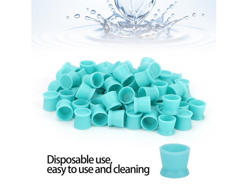 Kalíšky jsou vhodné pro běžný provoz tetovacích studií. Díky silikonovému provedení lépe drží na pracovní ploše než klasické plastové kalíšky. Určeno k jednorázovému použití.