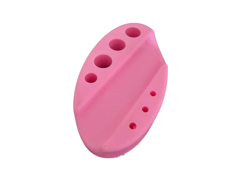 Tento silikonový stojánek je určený pro organizaci tetovacích strojků a drobného příslušenství při práci ve studiu. Má více otvorů různých velikostí, takže umožňuje odložit několik kusů vybavení najednou. Středová zvýšená část vytváří oddělené zóny a pomáhá lepší stabilitě odložených strojků. Měkký silikonový materiál je šetrný k povrchu vybavení a zároveň omezuje klouzání po stole.