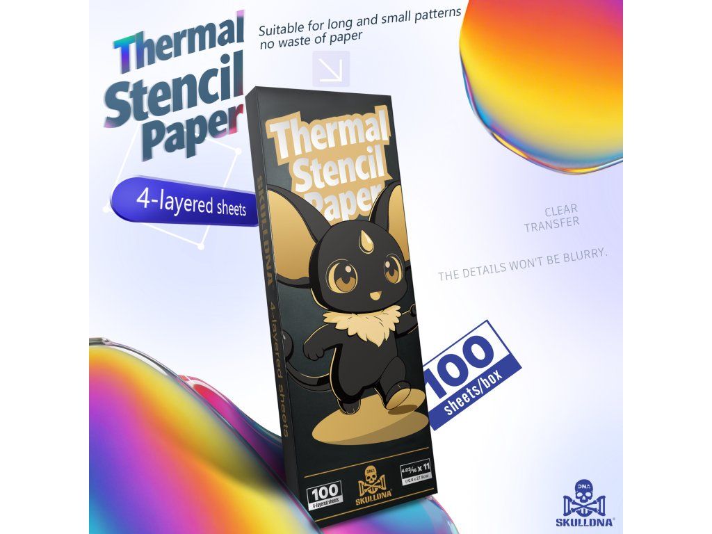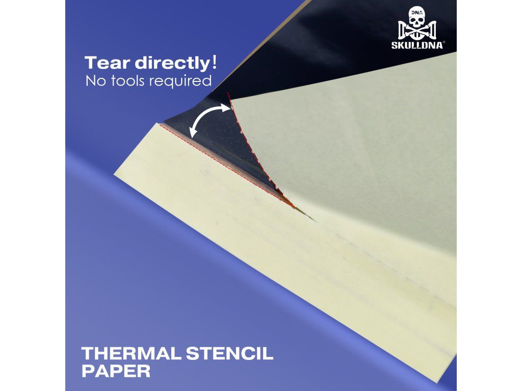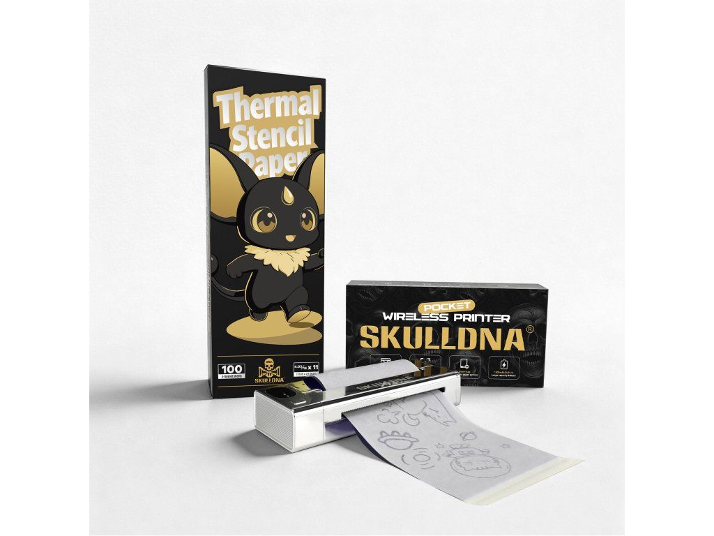 SKULLDNA Mini přenosový papír je navržený pro použití s mini termálními tiskárnami, kde je důležitá kompaktní velikost, plynulý průchod tiskem a čistý výstup. Hodí se pro menší motivy, jemné linky, loga i detailnější návrhy, kde záleží na přesnosti přenosu.