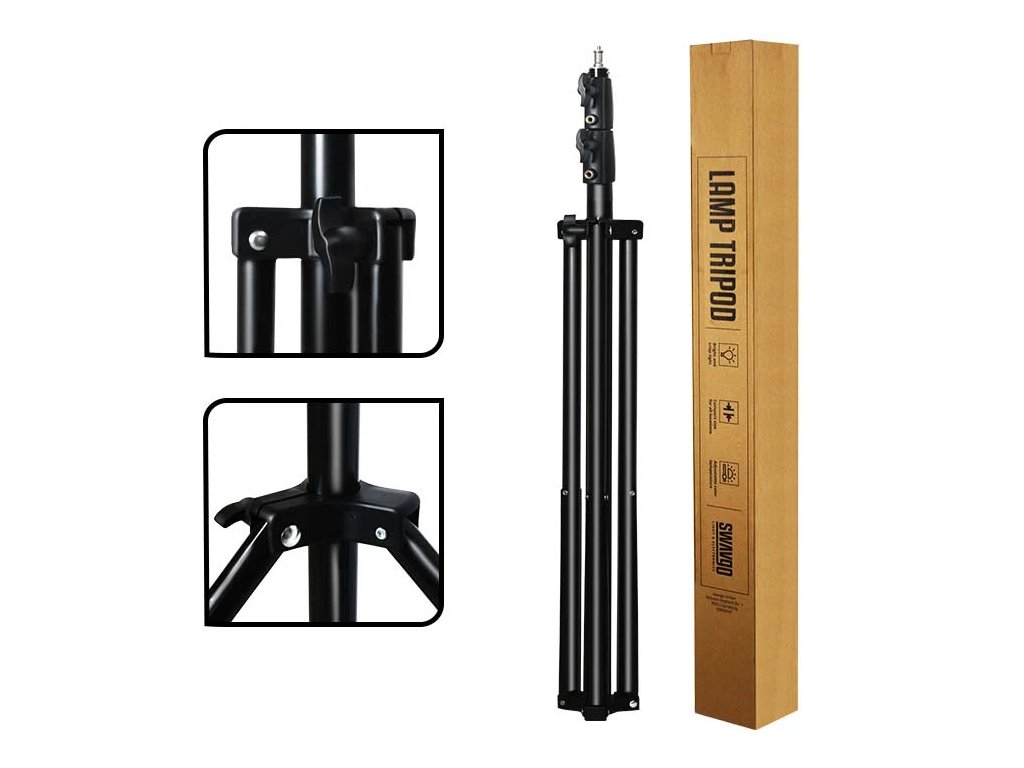 Součástí balení je hliníkový stativ s nastavitelnou výškou od 138 cm do 236,5 cm. Nosnost stativu je 5 kg, což je více než dostatečné nejen pro samotný panel, ale i pro další kompatibilní světla. Základna se šířkou 108 cm zajišťuje stabilitu i na nerovném povrchu. To není detail, ale klíčový parametr v reálném provozu studia.