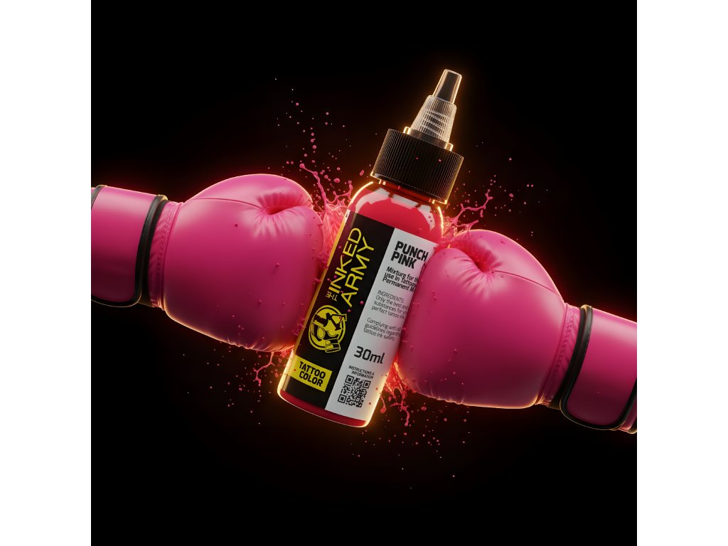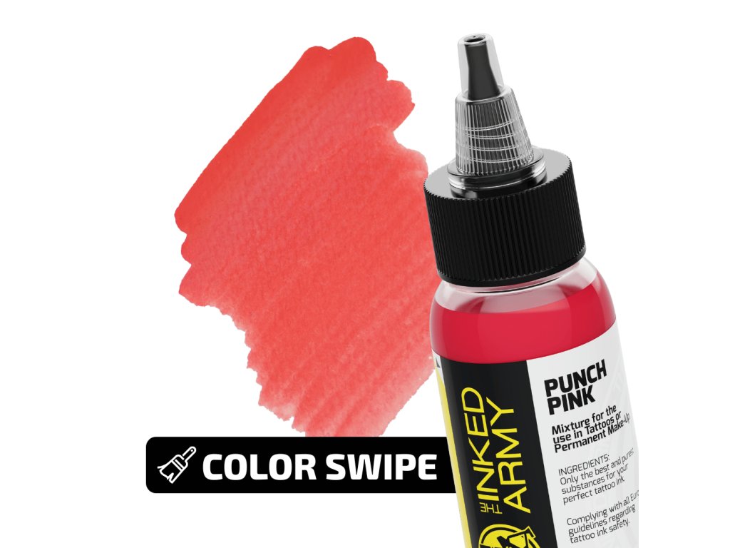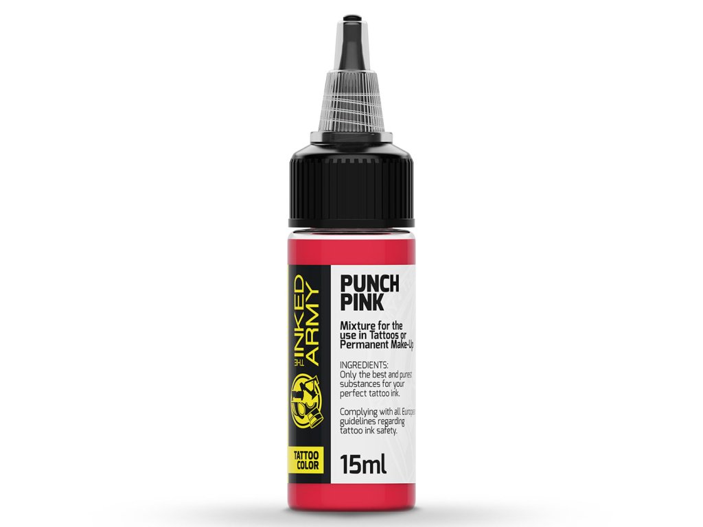 THE INKED ARMY Punch Pink je výrazný, energický růžový odstín ze série profesionálních tetovacích barev vyráběných v Německu. Nabízí silnou barevnou intenzitu, která okamžitě upoutá pozornost a dodá motivu dynamiku.