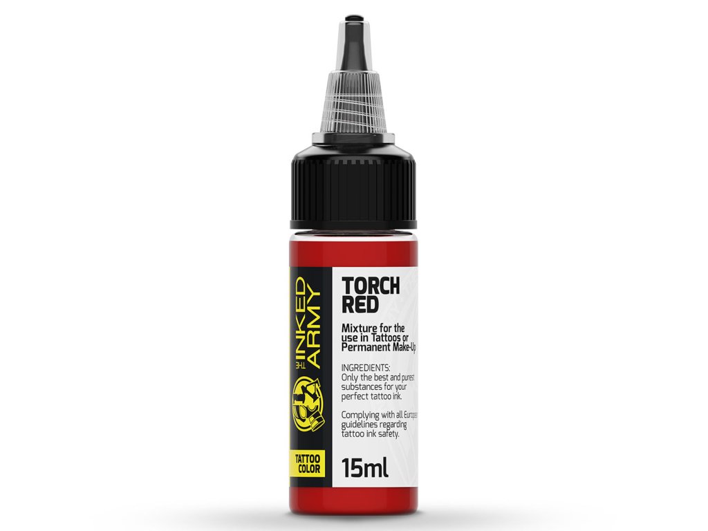 THE INKED ARMY Torch Red je intenzivní světlá červená inspirovaná barvou plamene. Nabízí výrazný, jasný odstín s vysokou barevnou intenzitou, který okamžitě přitáhne pozornost a dodá motivu dynamiku.