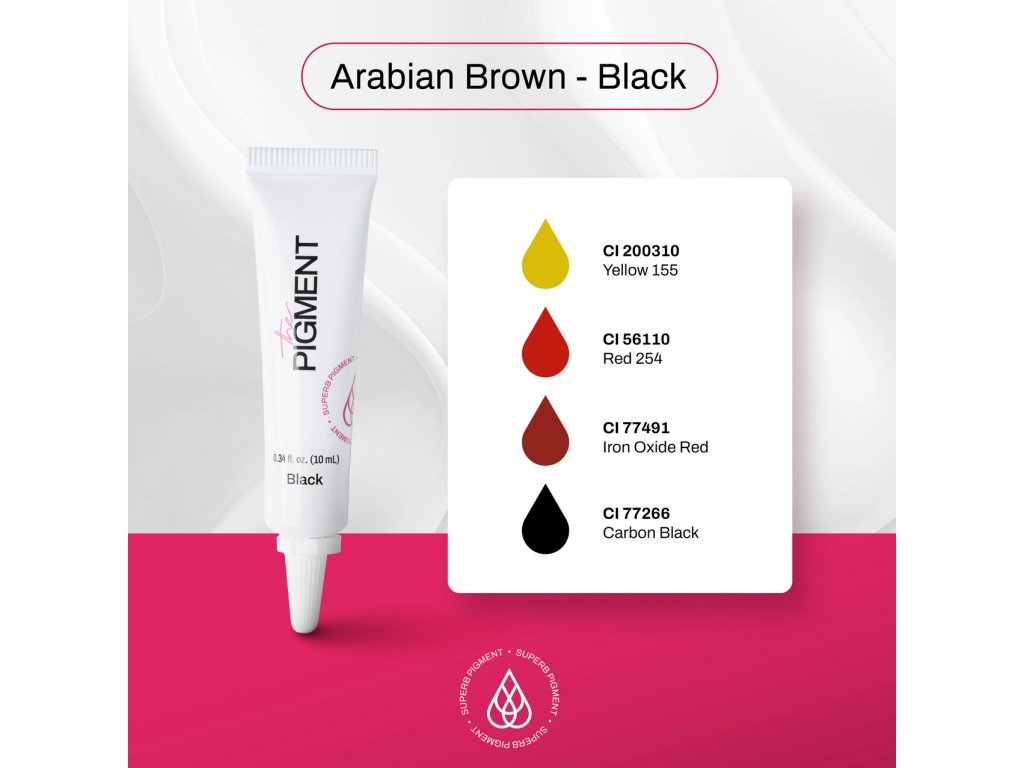 Pigment Arabian Brown lze použít samostatně nebo jej kombinovat s teplejšími odstíny pro neutralizaci pigmentu a dosažení větší hloubky a rozměru obočí. Díky své konzistenci se snadno nanáší, zajišťuje rovnoměrné vstřebávání barvy, přesné vedení linie a čisté hojení. Poskytuje výrazný, přesto přirozený efekt, který dlouhodobě drží svou intenzitu.